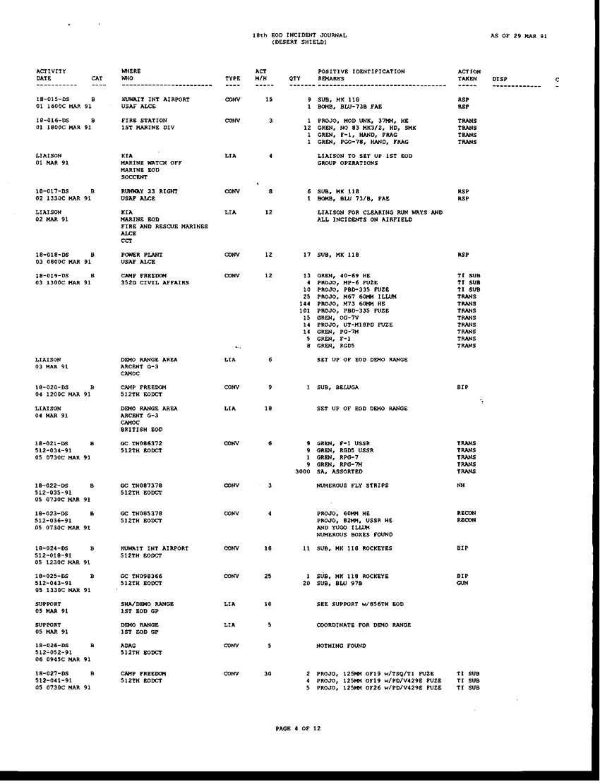Document 196 f:/Week-42/BX005554/ARMY EOD IN DESERT STORM RESPONCE TO THE ASSISTANT SEC OF DEFENSE/request for information concerning eod operation:1104960912392