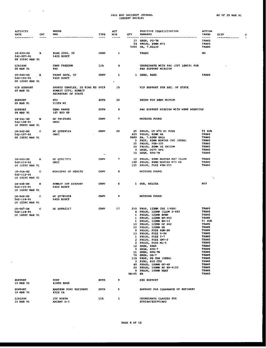 Document 196 f:/Week-42/BX005554/ARMY EOD IN DESERT STORM RESPONCE TO THE ASSISTANT SEC OF DEFENSE/request for information concerning eod operation:1104960912392