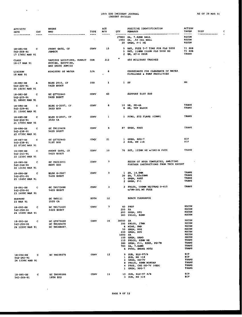 Document 196 f:/Week-42/BX005554/ARMY EOD IN DESERT STORM RESPONCE TO THE ASSISTANT SEC OF DEFENSE/request for information concerning eod operation:1104960912392