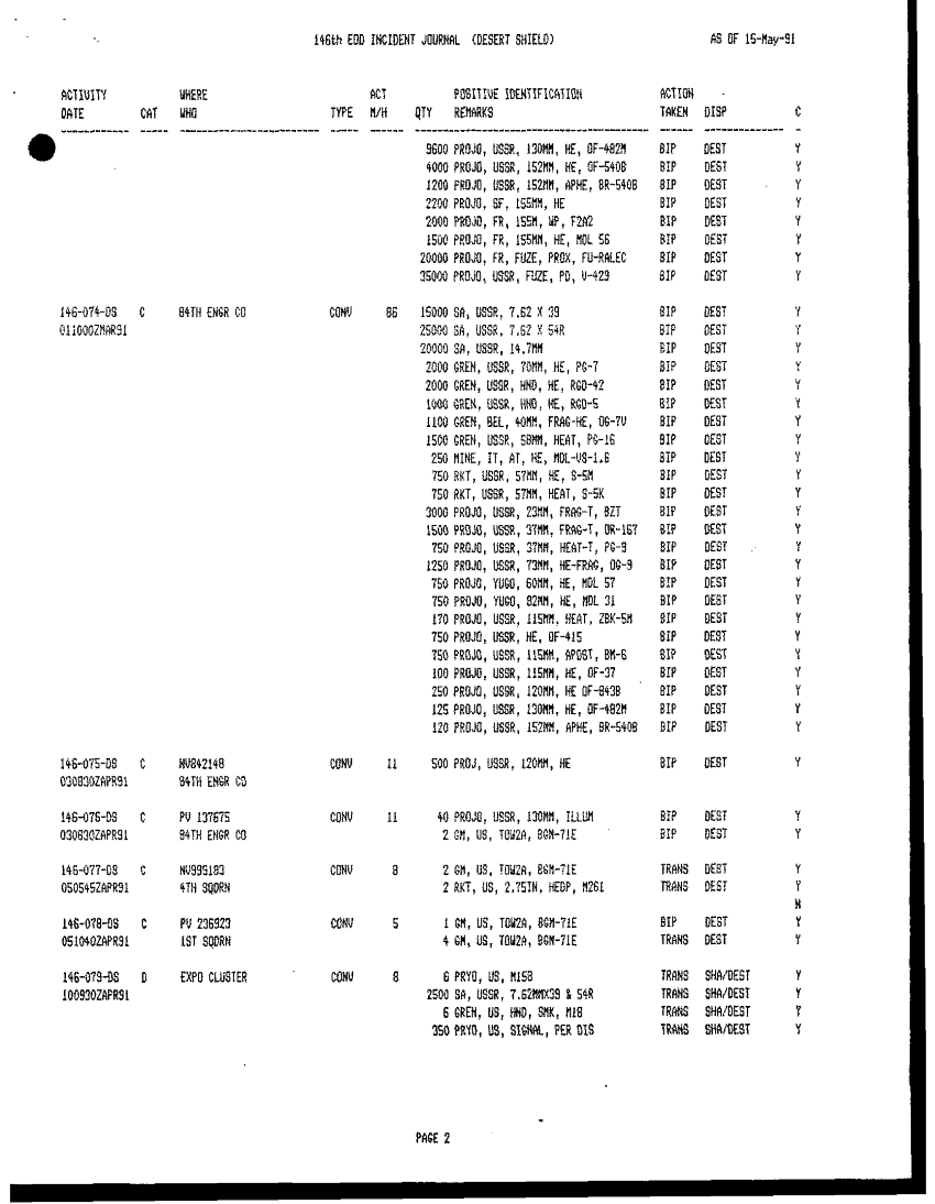 Document 27 f:/Week-42/BX005554/ARMY EOD IN DESERT STORM VOL 5 512 EOD CONTROL TEAM EODCT/reply to questionaire for all detachments:11049609124410