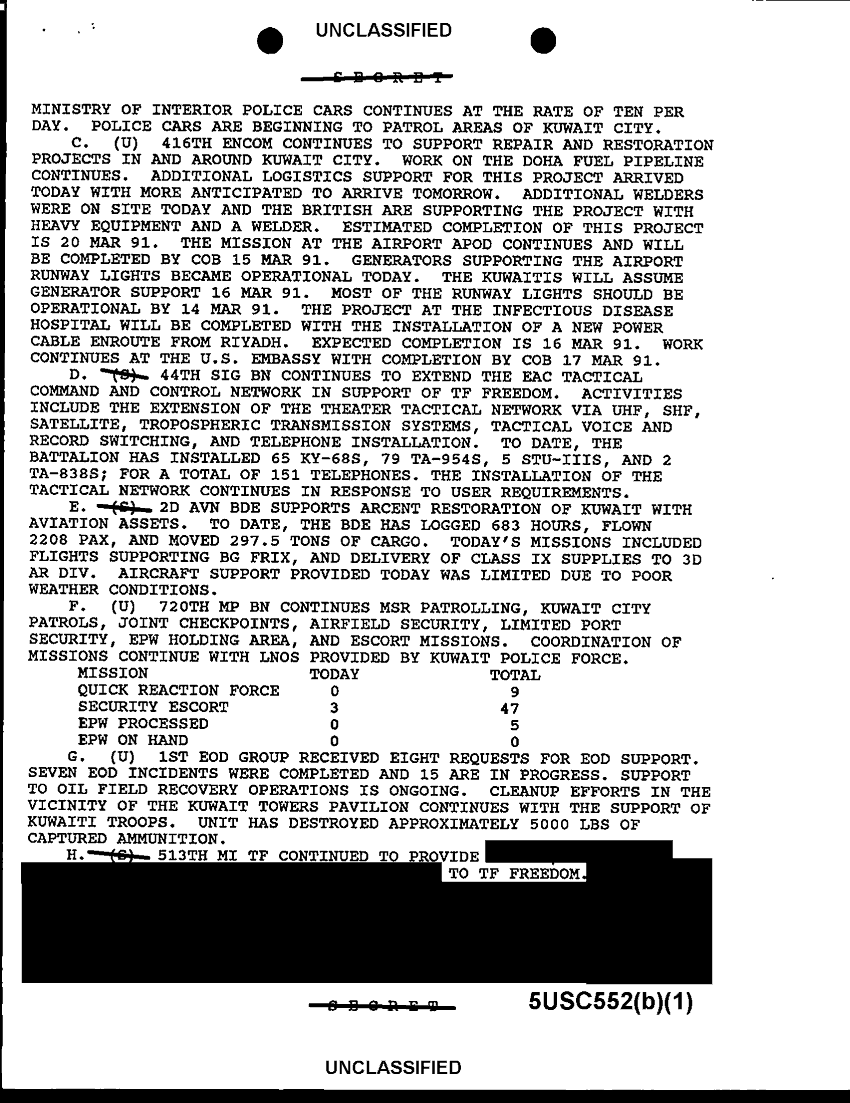 Subject = SITREP TF FREEDOM 13 MAR 91