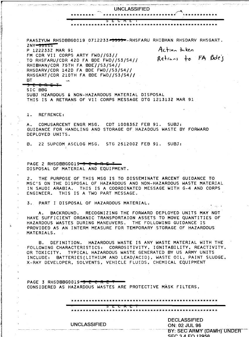 Document 6 f:/Week-24/BX000207/DAILY STAFF JOURNAL - FRAG ORDER - COMMANDERS SITREP 13 MAR 91/message hazardous and non hazardous material di:11089615153660