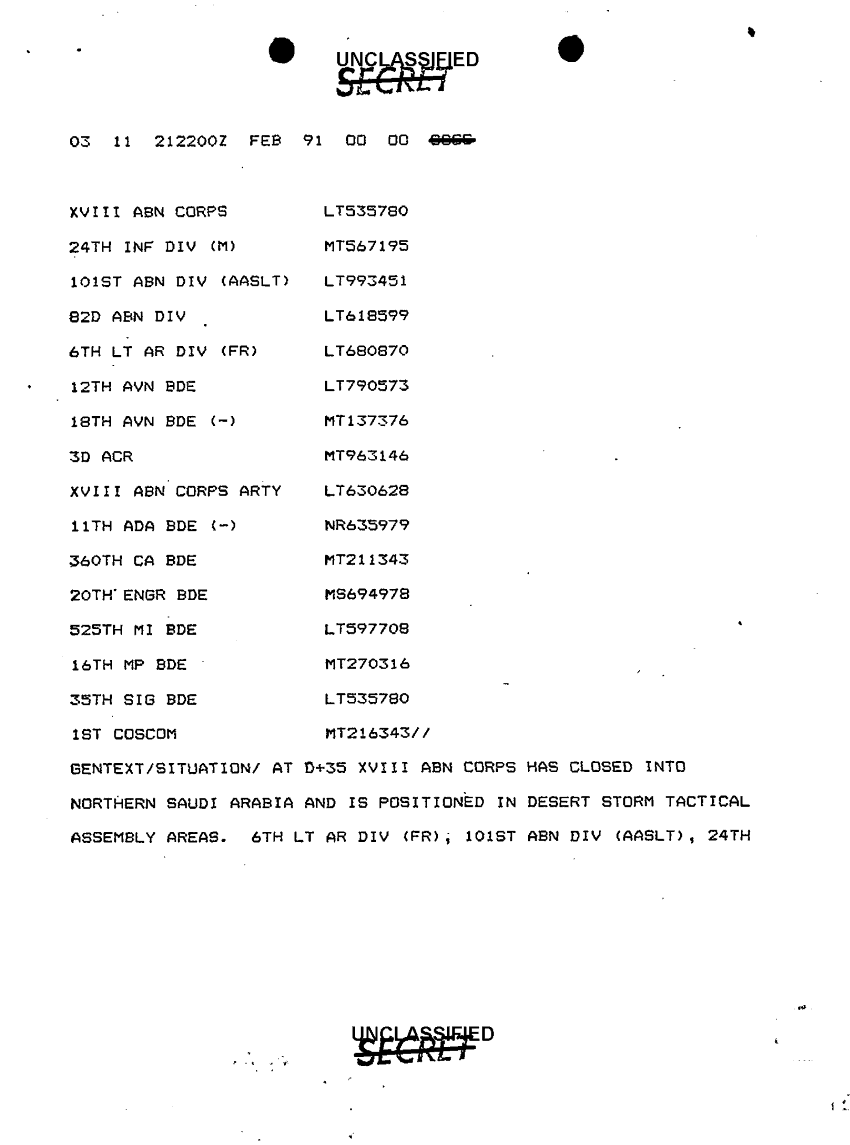 Document 11 f:/Week-10/BX000020/DUTY LOG G3 REAR XVIII ABC MAIN CP SITREPS FEB 91/message dated 21 feb 91:11229616375155