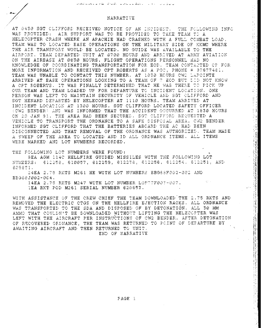 Subject = AFTER ACTION REPORT ON EOD OPERATION DURING OPER