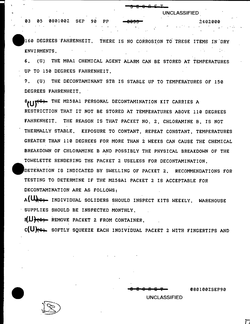 Subject = EFFECTS OF HIGH TEMPERATURES ON CHEMICAL DEFENSE