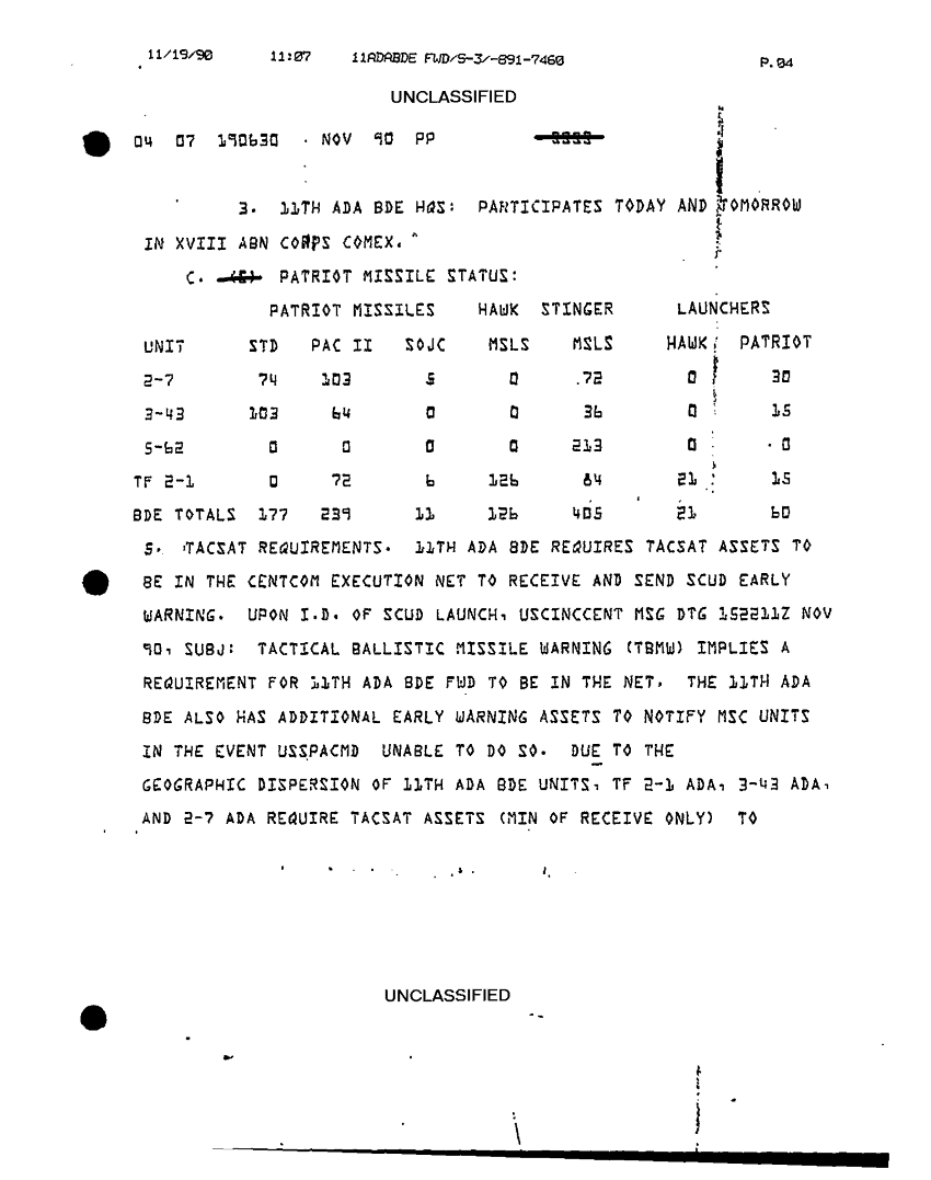 Document 7 f:/Week-32/BX000499/COMMAND REPORTS SITREPS 11TH ADA BDE 6 OCT 90-23 NOV 90/sitrep 11th ada no 86 18 to 19 nov 90:12179611150813