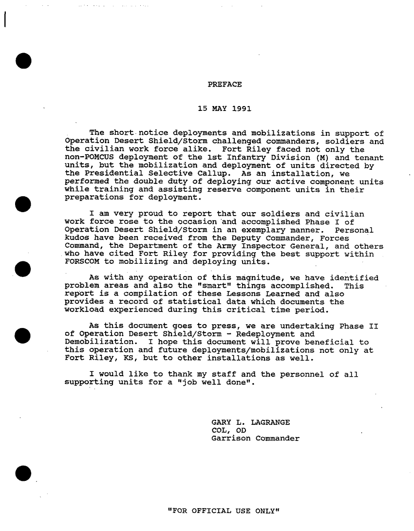 Document 517 f:/Week-26/BX001008/DESERT STORM AFTER ACTION REPORTS/special information for installation after actio:12179611150511