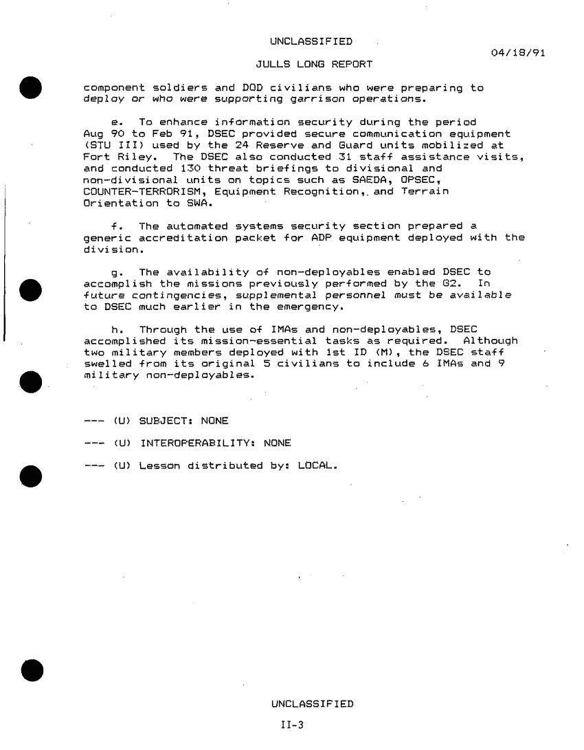 Document 517 f:/Week-26/BX001008/DESERT STORM AFTER ACTION REPORTS/special information for installation after actio:12179611150511