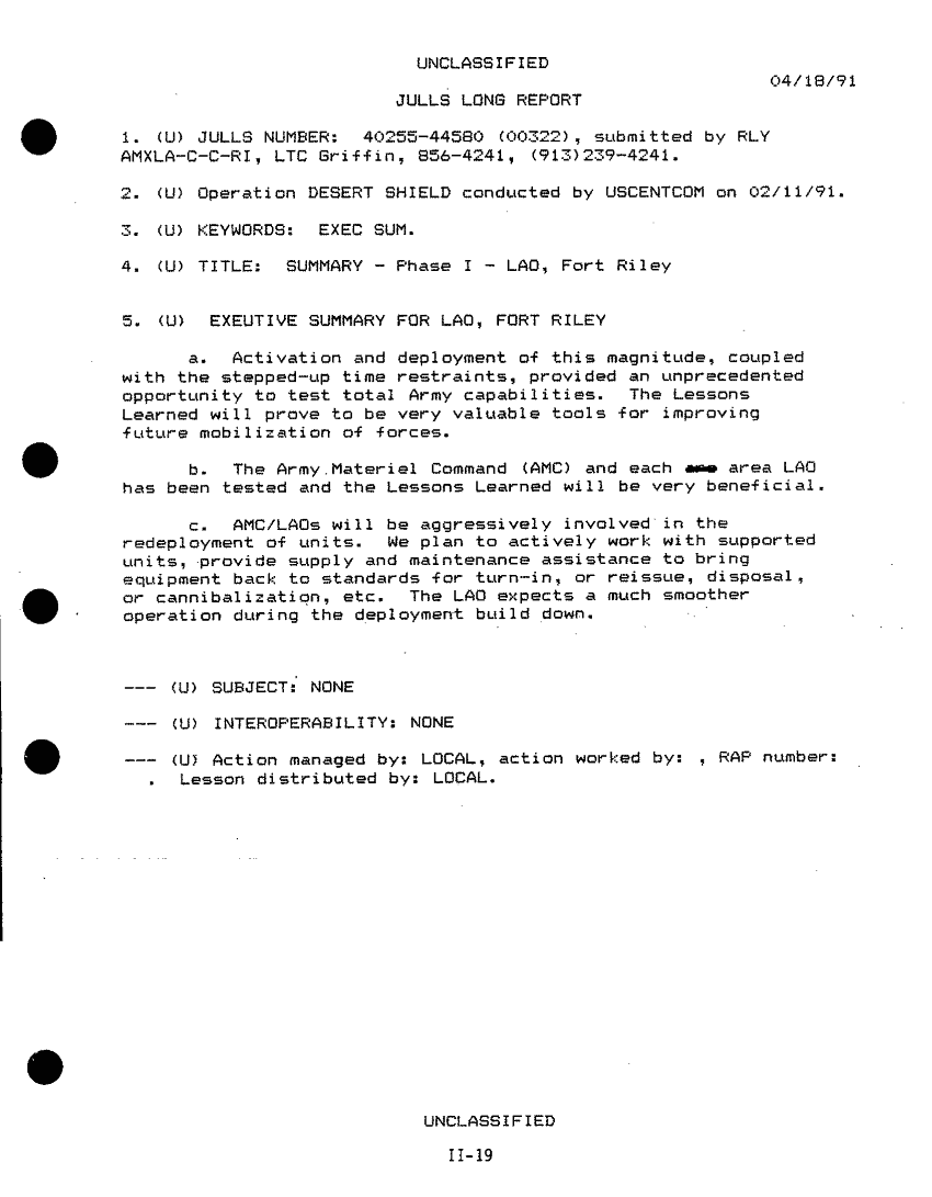 Document 517 f:/Week-26/BX001008/DESERT STORM AFTER ACTION REPORTS/special information for installation after actio:12179611150511
