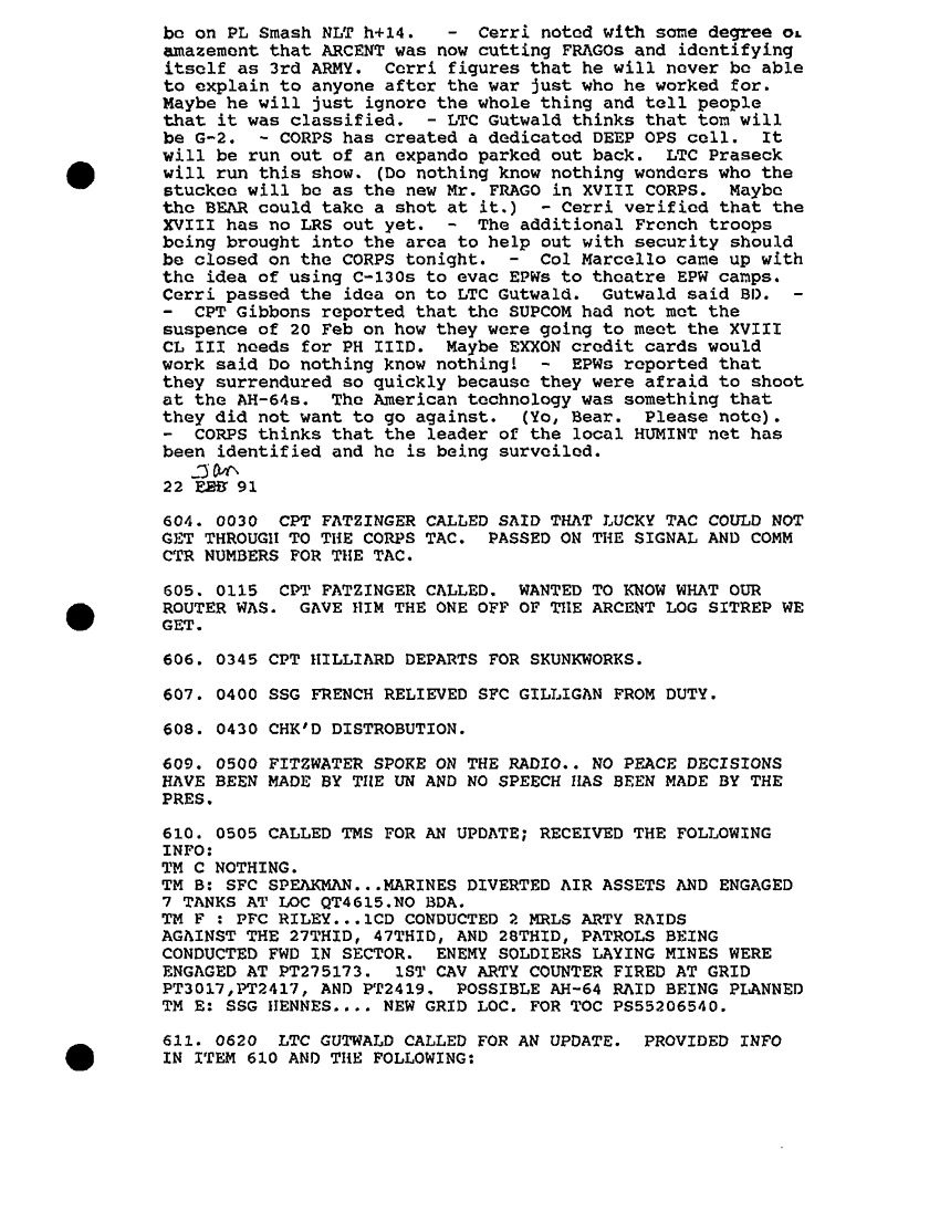 Document 57 f:/Week-30/BX000454/HISTORIANS BACKGROUND MATERIAL FILES - DAILY LOG SHEETS/daily staff journal and duty officers log:12179611150712