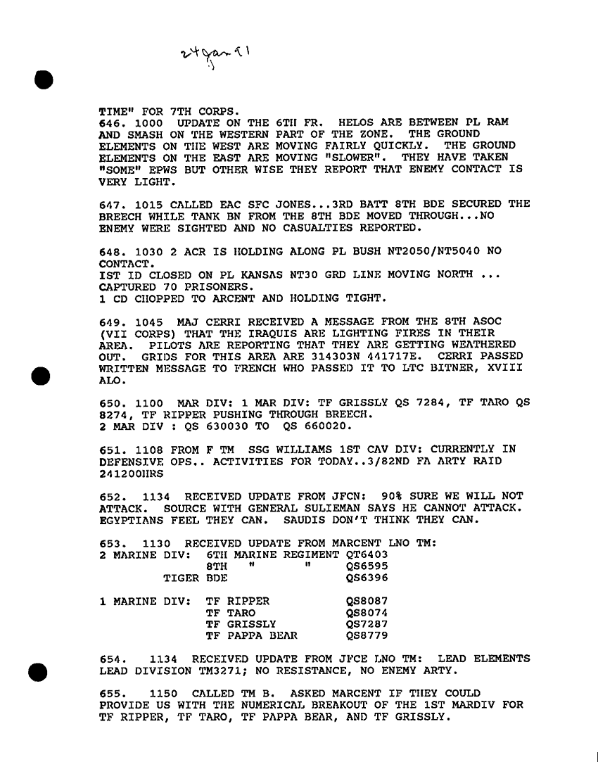 Document 57 f:/Week-30/BX000454/HISTORIANS BACKGROUND MATERIAL FILES - DAILY LOG SHEETS/daily staff journal and duty officers log:12179611150712