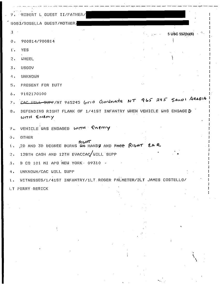 Document 78 f:/Week-26/BX001004/AWARD GUEST ROBERT L III-1/casualty report award of the purple heart:12179611151925