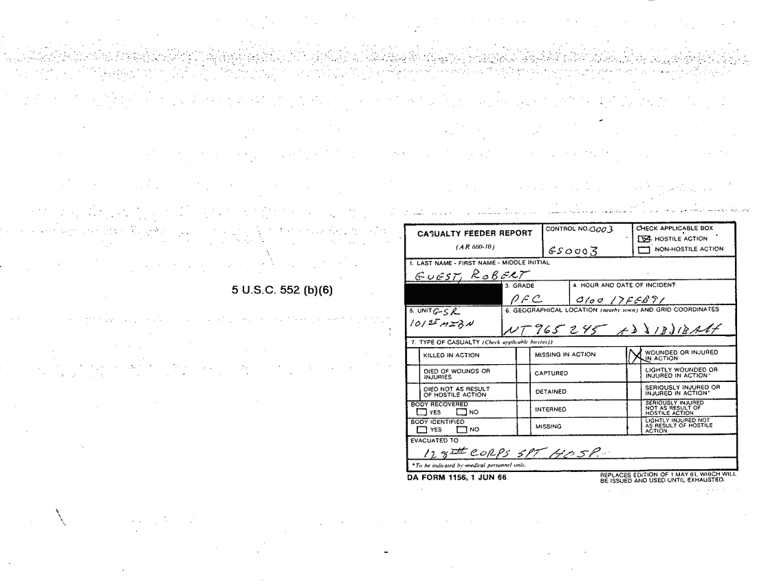 Document 78 f:/Week-26/BX001004/AWARD GUEST ROBERT L III-1/casualty report award of the purple heart:12179611151925