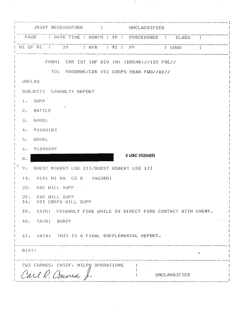 Document 78 f:/Week-26/BX001004/AWARD GUEST ROBERT L III-1/casualty report award of the purple heart:12179611151925