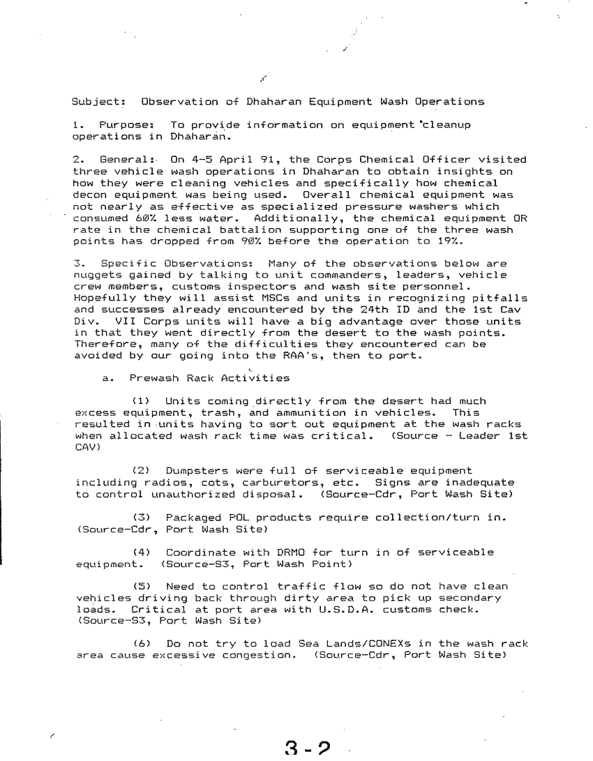 Document 9 f:/Week-24/BX000213/7TH ENG BDE COMMANDERS CONFERENCE 13 APR 91/observation of dhaharan equipment wash operation:12179611151723