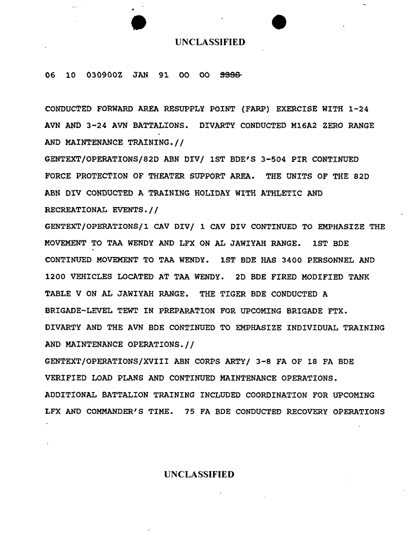 Document 10 f:/Week-10/BX000020/DUTY LOG G3 REAR XVIII ABC MAIN SITREPS JAN 91/message dated 3 jan 91:12179611154452