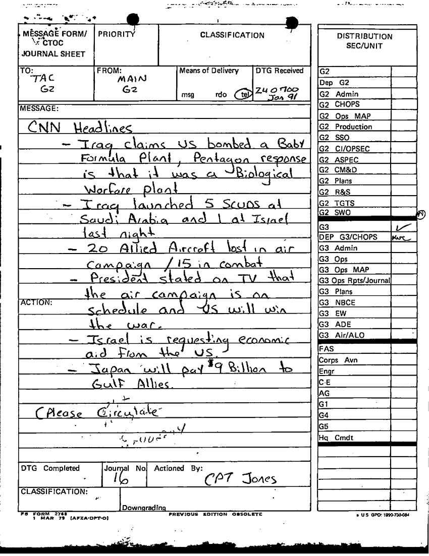 Document 25 f:/Week-12/BX000024/DUTY LOG G3 TAC CP 24 JAN 91/daily staff journal or duty officers log:12179611153137