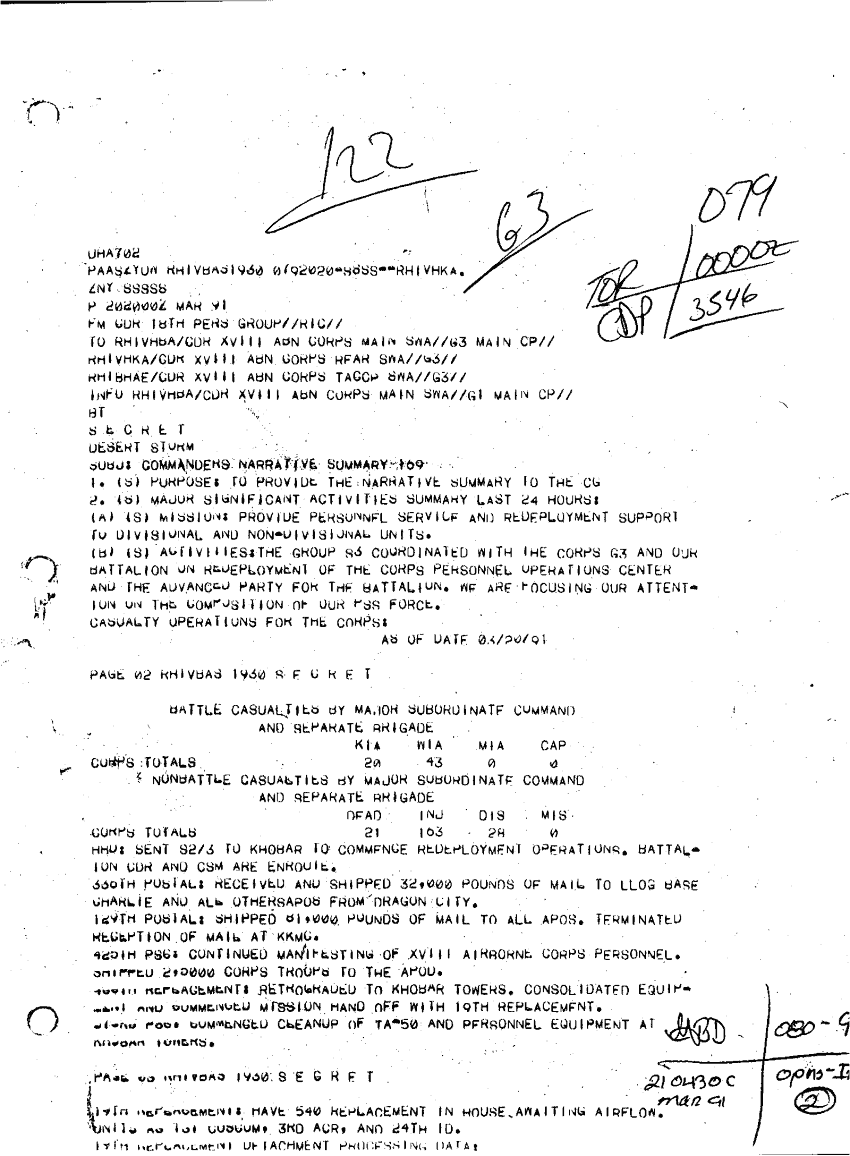 Document 2 f:/Week-09/BX000019/DUTY LOG G3 REAR 21 MAR 91/commanders narrative summary 169:12179611160776