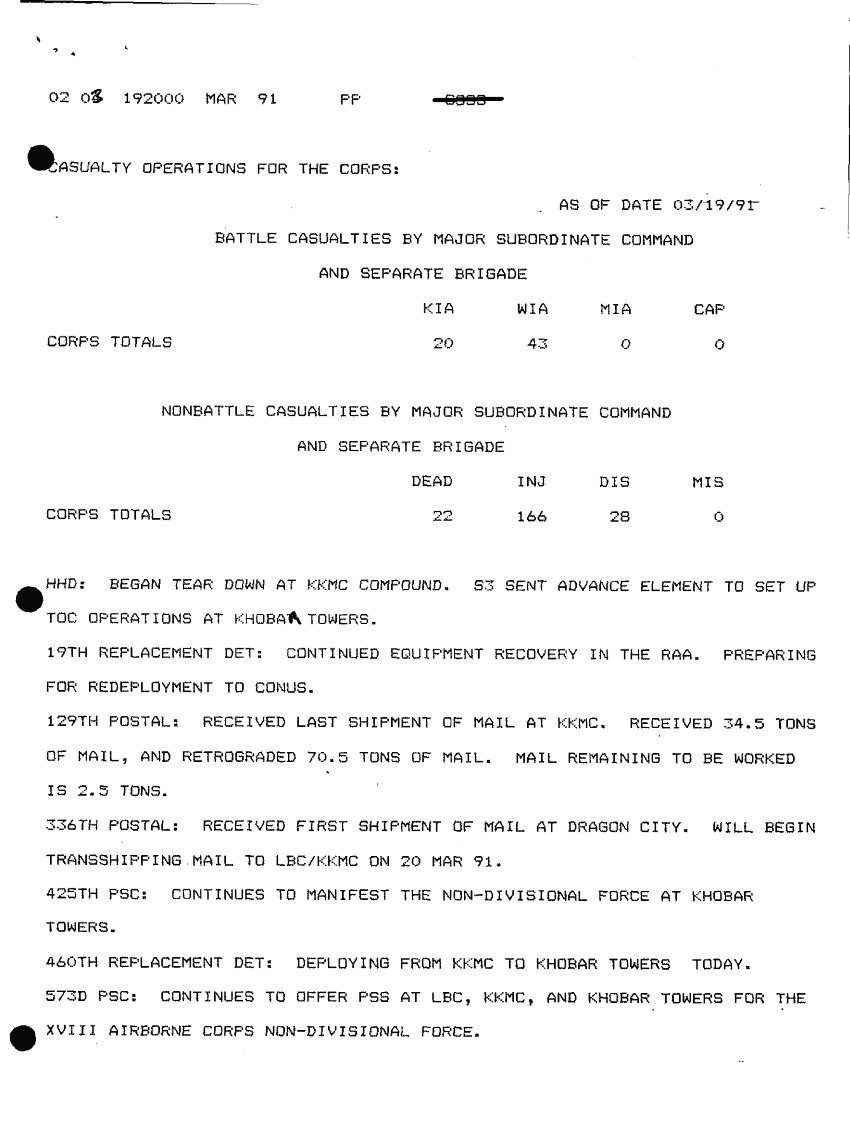 Document 3 f:/Week-09/BX000019/DUTY LOG G3 REAR 21 MAR 91/commanders narrative summary 168:12179611154047