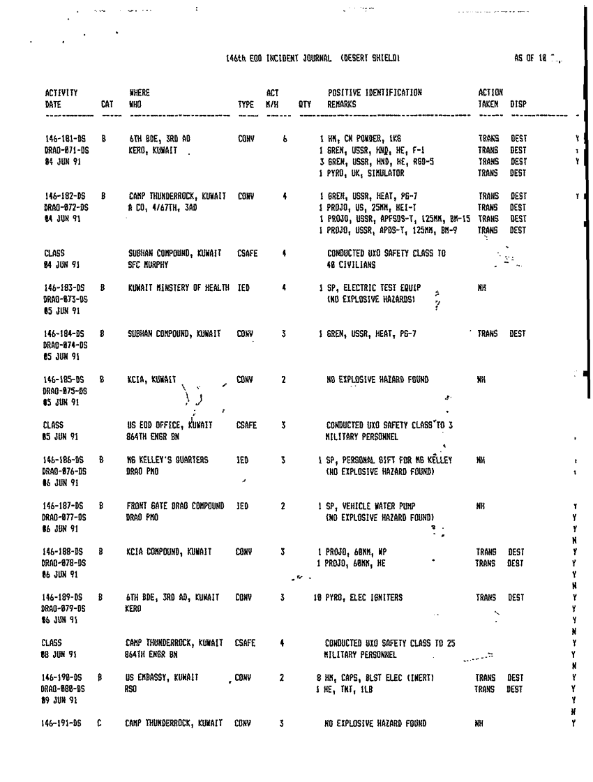 Document 12 f:/Week-46/BX005555/512TH EODCT SUBORD UNIT JOURNALS EOD INCIDENTS/eod activity and status report ods 1 30 jun 91:121796111633105