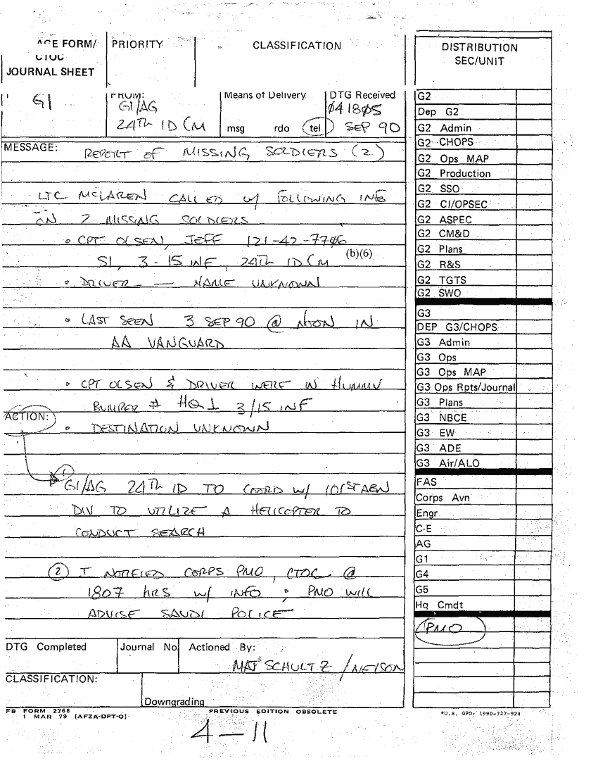 Document 110 f:/Week-15/BX000043/DUTY LOG G1 1-15 SEP 90/daily staff journal or duty officers log:12269616083010