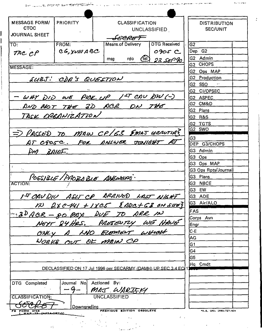 Document 74 f:/Week-14/BX000007/DUTY LOG G3 TAC CP 21 SEP 90/daily staff journal or duty officers log 21 sep :12269616083213