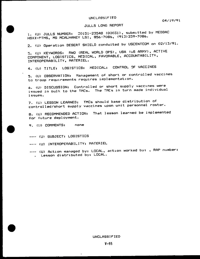 Subject = DESERT SHIELD STORM AFTER ACTION REPORT PHASE 1