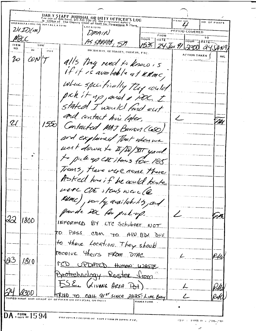 Document 85 f:/Week-22/BX001431/DAILY STAFF JOURNALS 24TH INF JAN MAR 91/daily staff journal:12269616085661