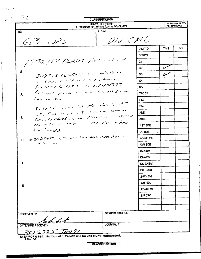 Document 85 f:/Week-22/BX001431/DAILY STAFF JOURNALS 24TH INF JAN MAR 91/daily staff journal:12269616085661