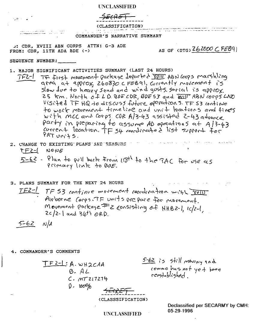 Document 36 f:/Week-18/BX000056/TASK FORCE 2-1 ADA SITREPS FEB 91/situation reports 11th ada bde feb 91:010297184310118