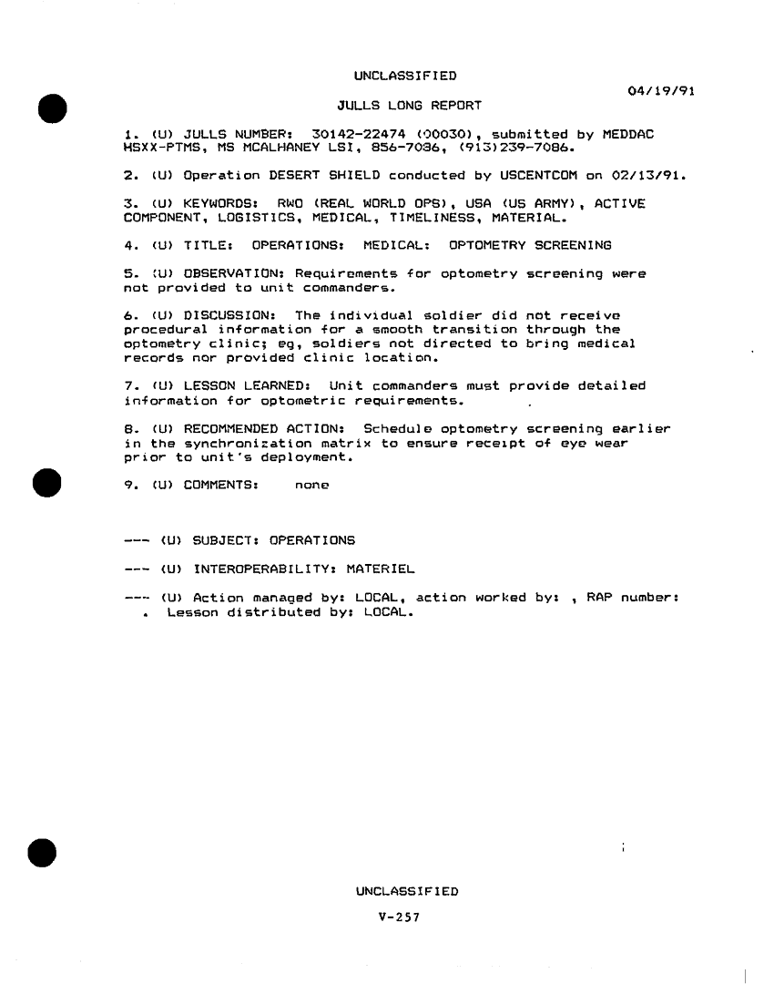 Subject = DESERT SHIELD STORM AFTER ACTION REPORT PHASE 1