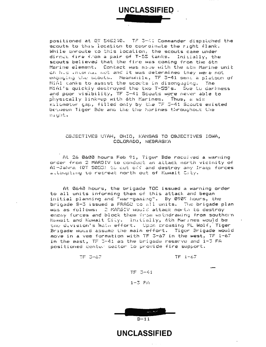 Subject = ANNEX D TIGER BRIGADE CHRONOLOGY TABLE OF CONTENTS