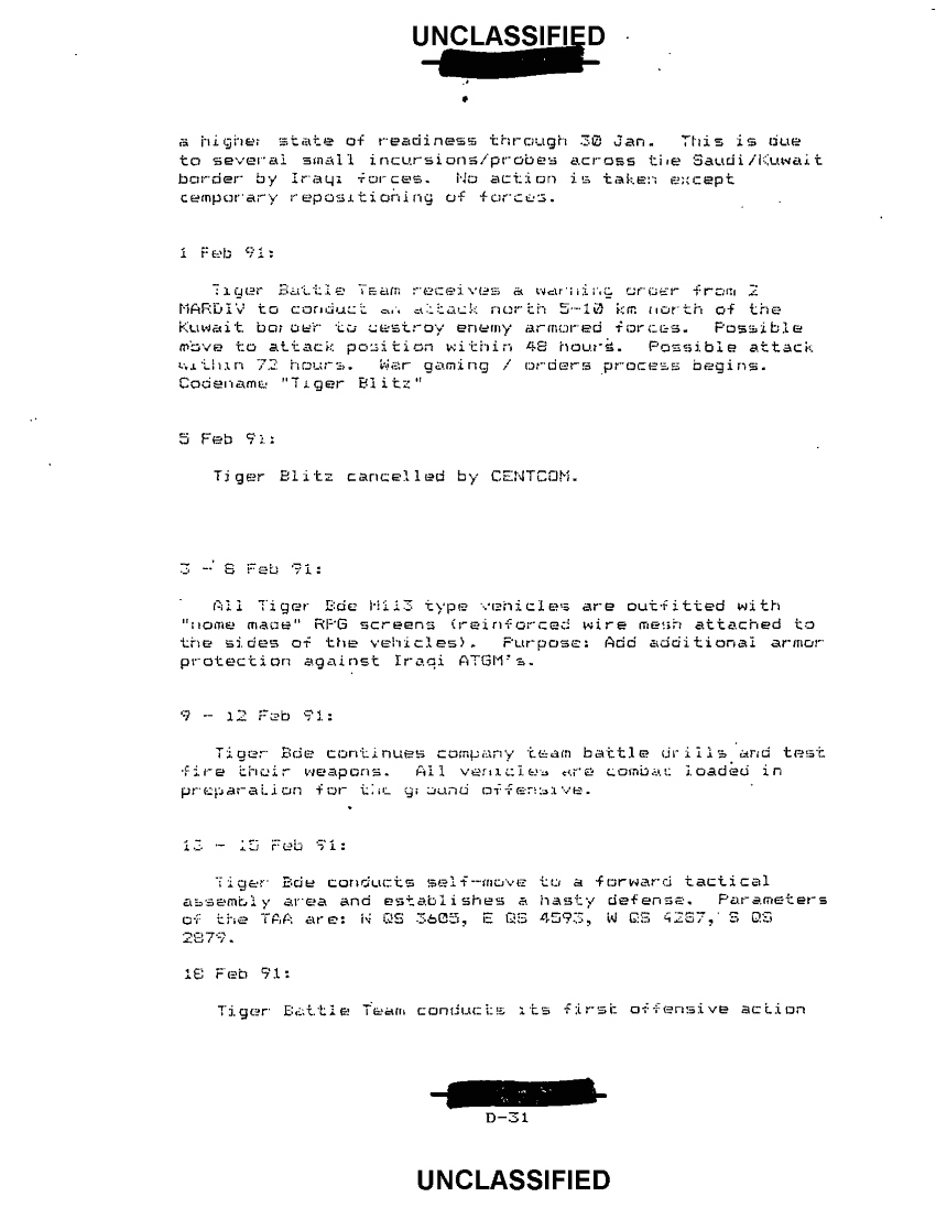 Subject = ANNEX D TIGER BRIGADE CHRONOLOGY TABLE OF CONTENTS