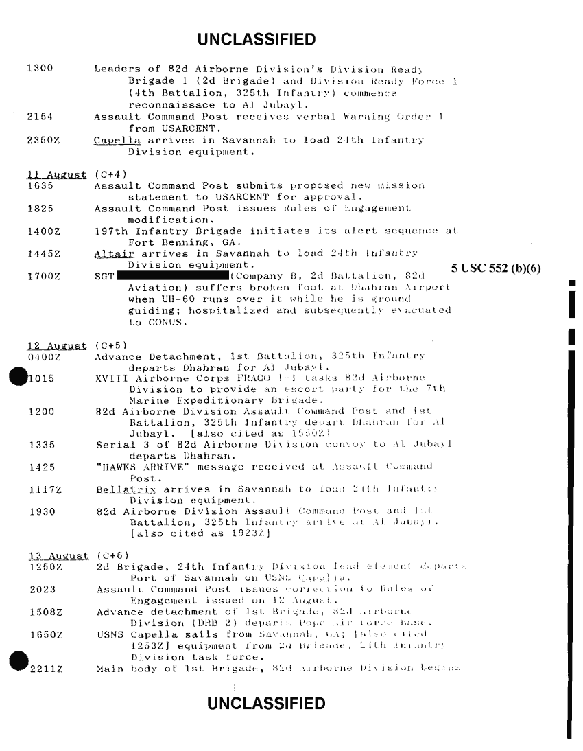 Subject = XVIII AIRBORNE CORPS OPERATION DESERT SHIELD CHRONOLOGY
