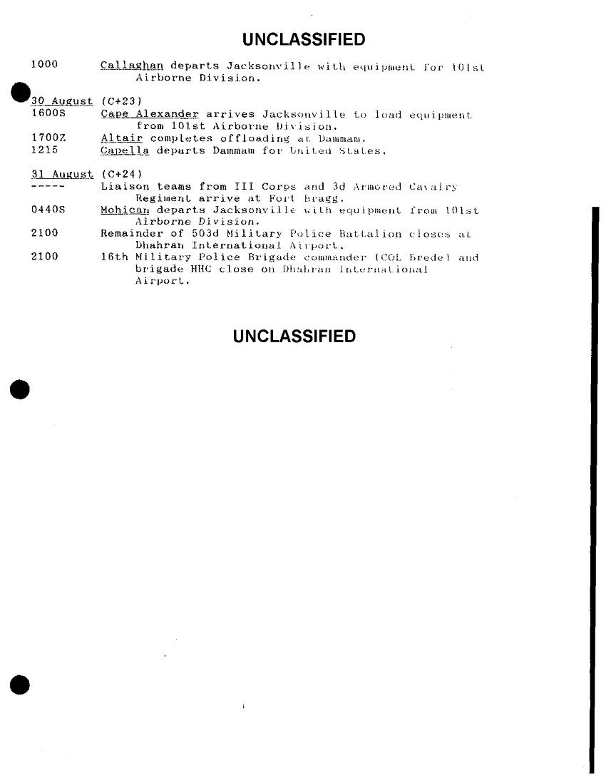 Subject = XVIII AIRBORNE CORPS OPERATION DESERT SHIELD CHRONOLOGY