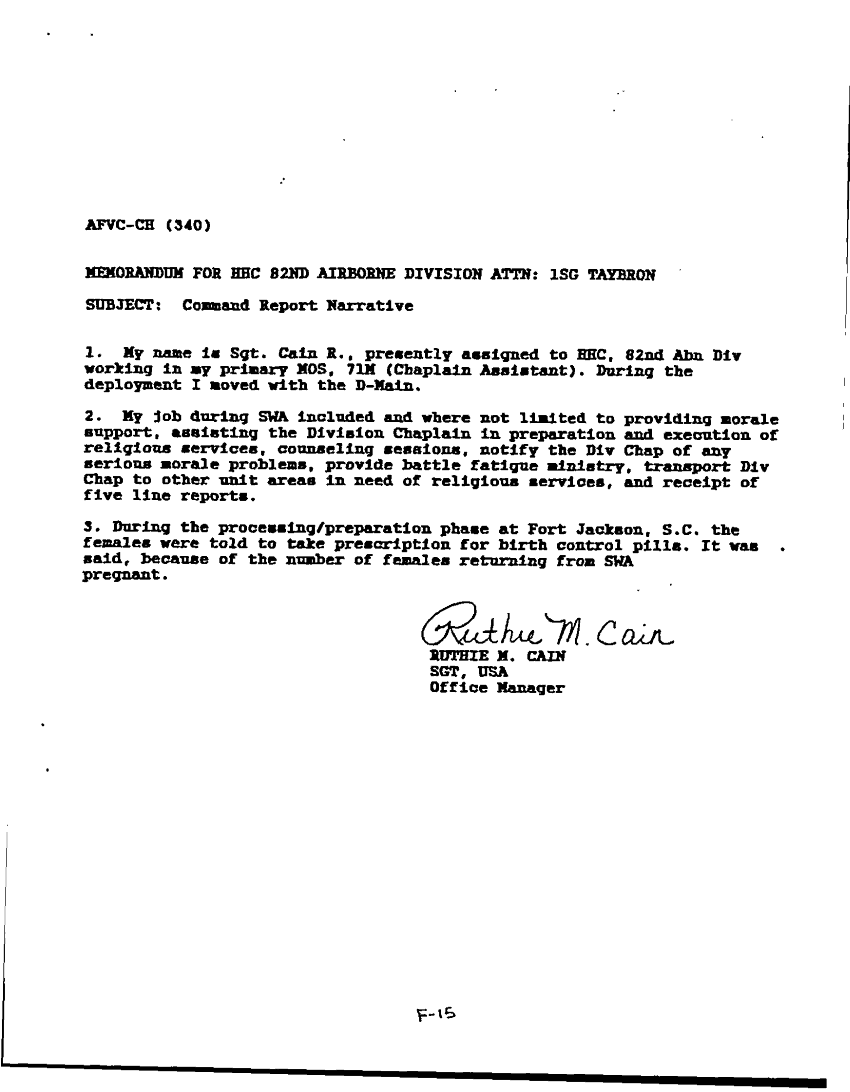 Document 96 f:/Week-22/BX001509/82D ABN DIVISION OPERATION DES RT SHEILD AND DESERT STORM COMMAND REPORT/command report narrative:04189716374810