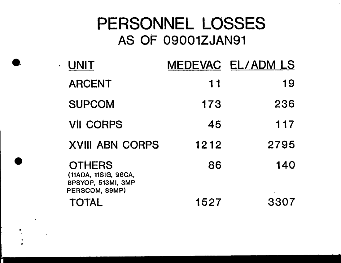 Subject = ARCENT WIDE LOSSES 9 JAN 91