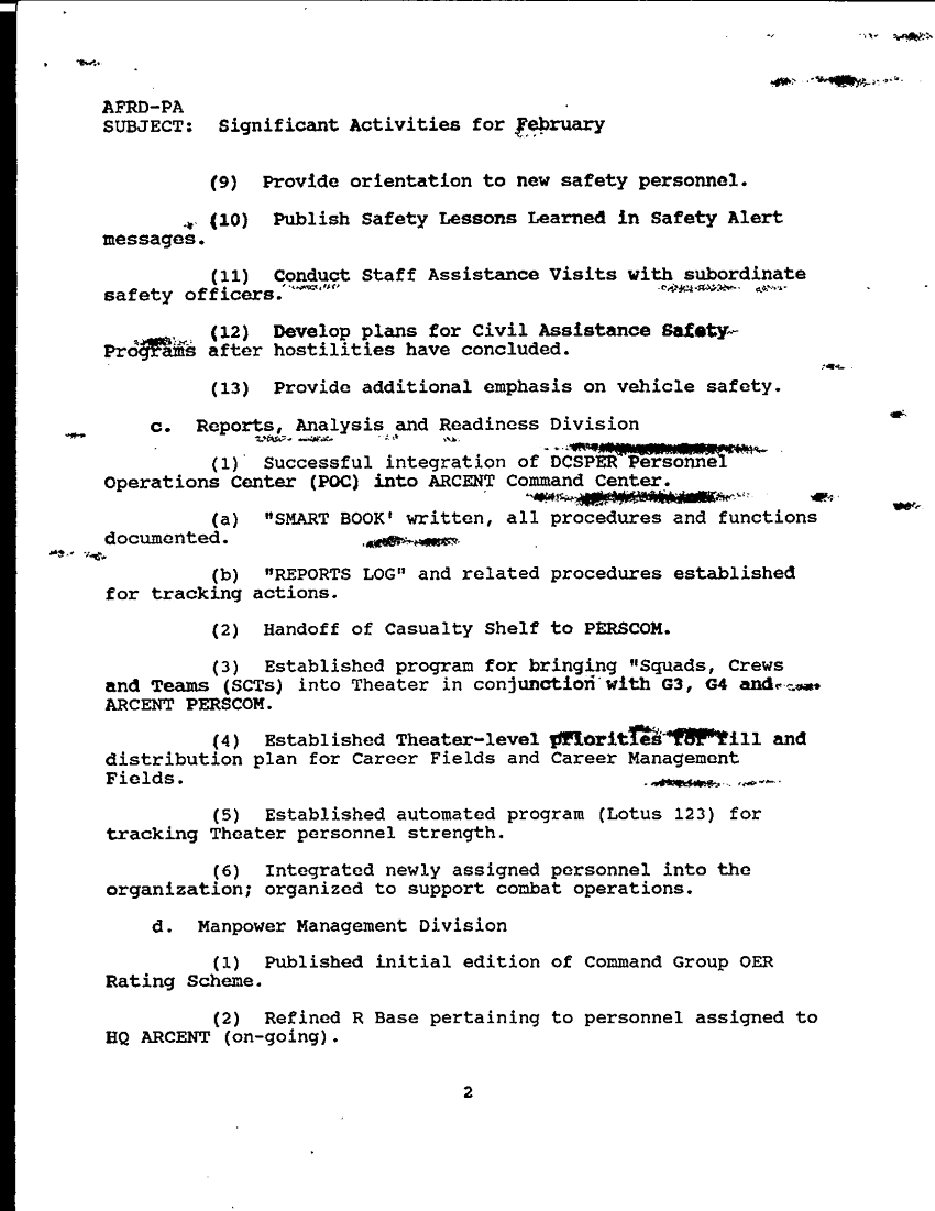Document 4 f:/Week-28/BX000411/COMMAND REPORTS-PERSTATS JAN-MAR 91 PART 1/significant activities for february 4 feb 91:05099711384079