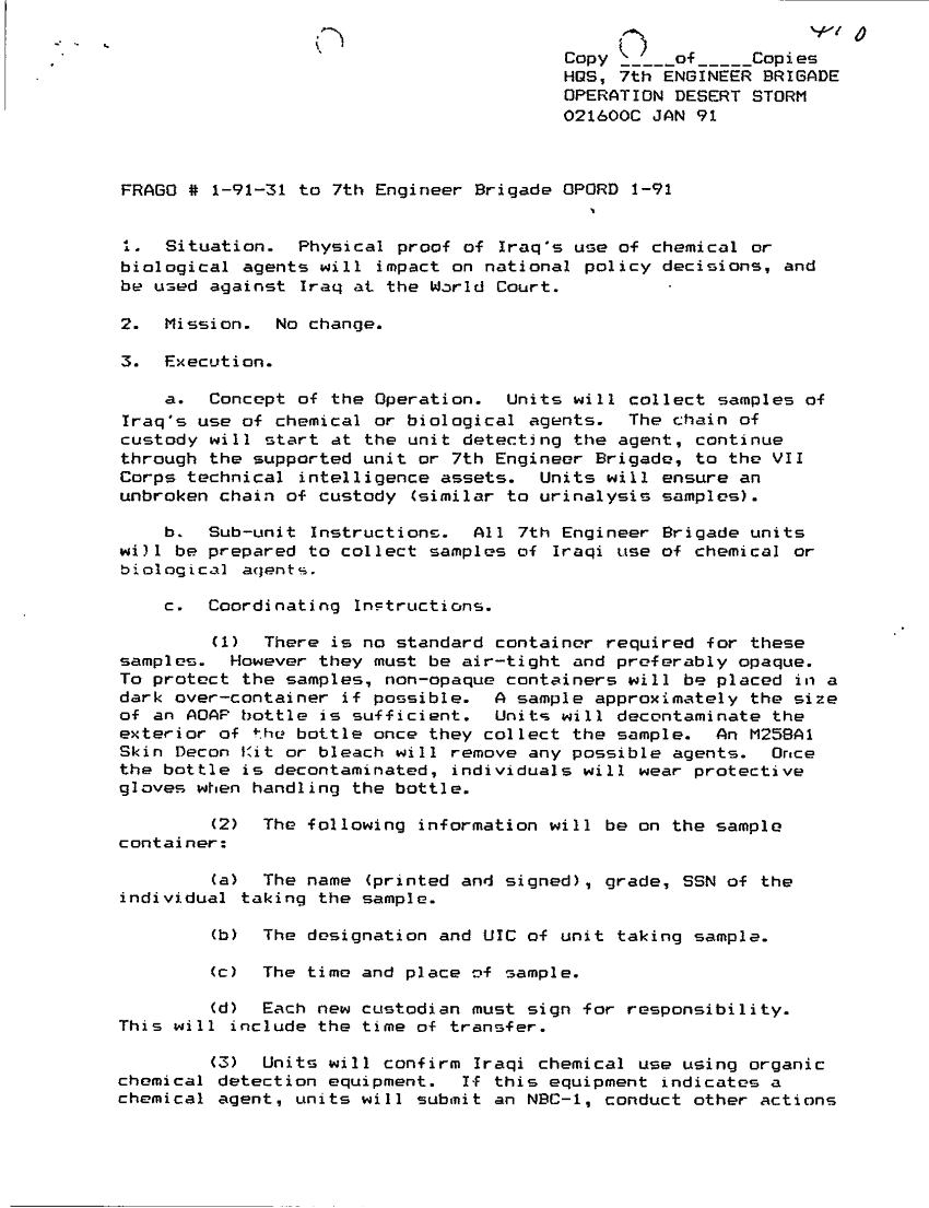 Document 2 f:/Week-64/BX000302/FRAGO NUMBER 1-91-3 THRU NUMBER 1-91-130-TO 7TH ENGINEER BRIGADE OPORD 1-91/frago 1 91 31 2 jan 91:08289707514121