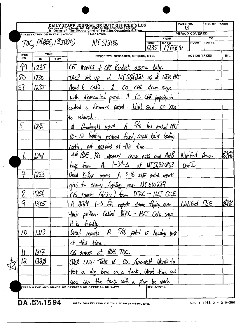 Document 30 f:/Week-60/BX001072/TOC 1ST BDE 1 ID-DAILY STAFF JOURNALS-16 FEB THRU 25 FEB 91/daily staff journal 19 feb 91:09229712012610