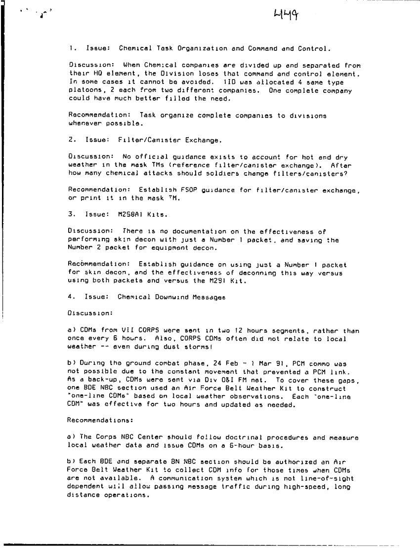 Folder Title = CHEMICAL DEFENSE ISSUES OBSERVATIONS AND RECOMMENDATIONS