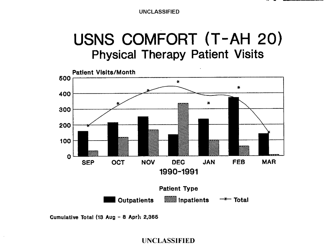 Document 3 f:/Week-39/BX303818/usns comfort tah 20 deployment statistics 14 mar 91/usns comfort physical therapy patient visits 8:12179609562210