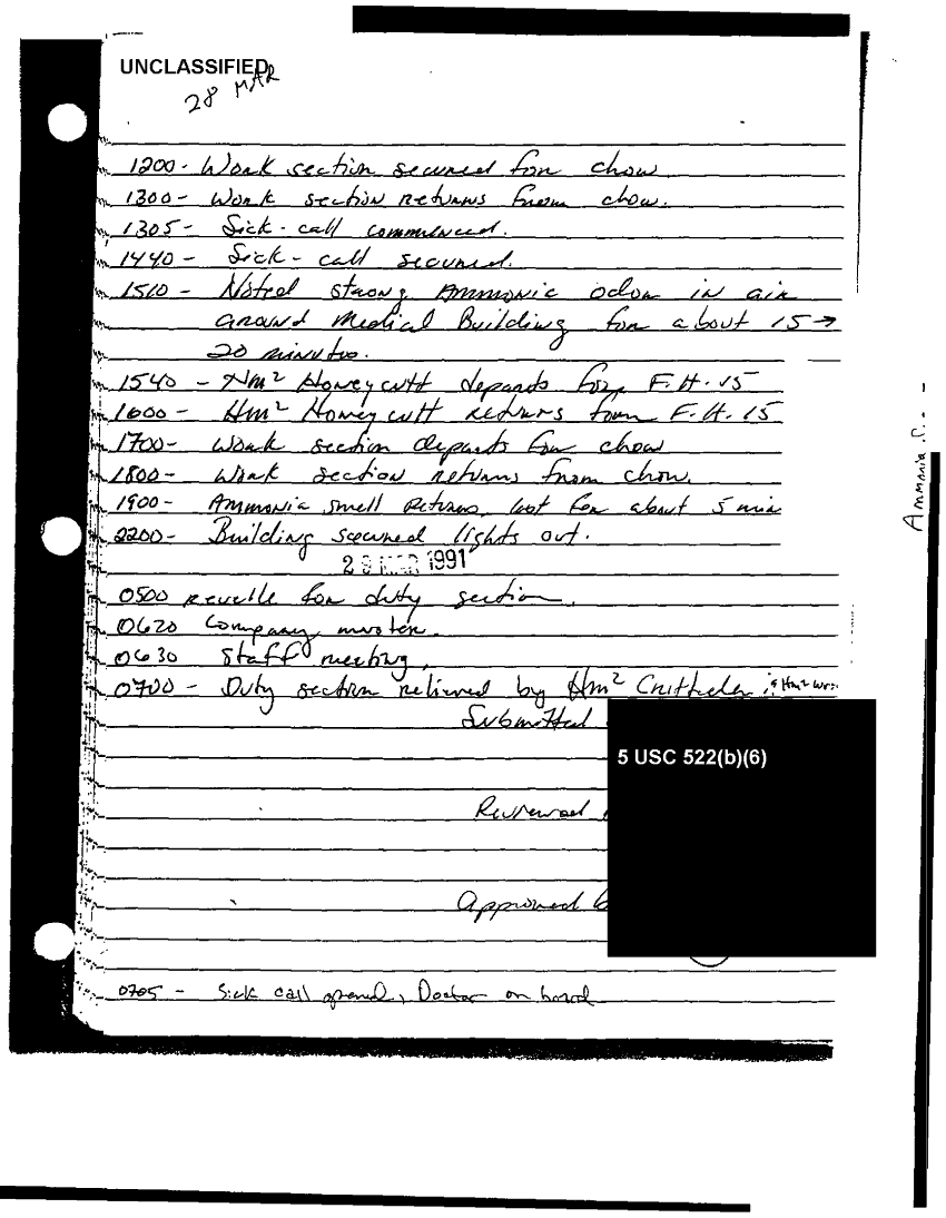 Document 49 f:/Week-37/BX303811/VARIOUS NAVAL MESSAGES FOLDER 4/various journal entries sick call 22 mar 91:0324971041562