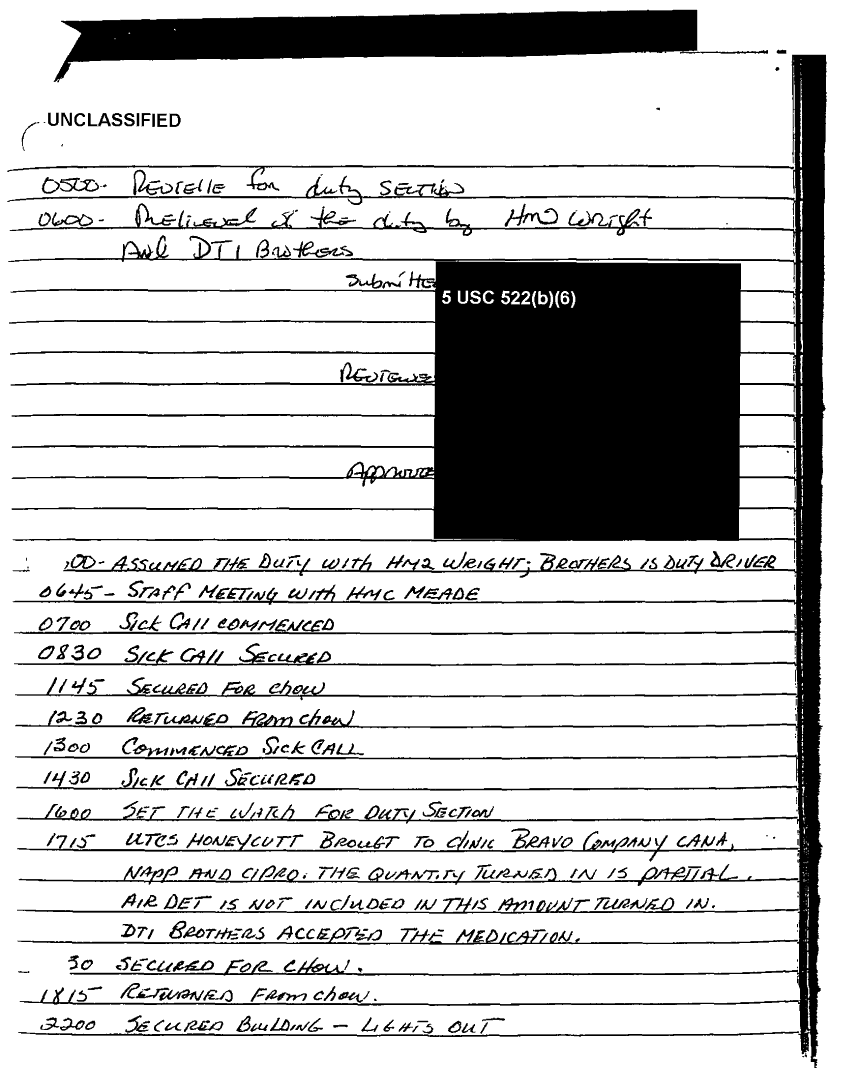 Document 49 f:/Week-37/BX303811/VARIOUS NAVAL MESSAGES FOLDER 4/various journal entries sick call 22 mar 91:0324971041562