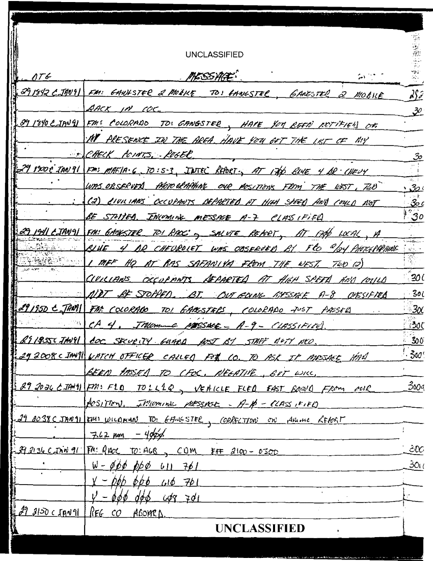 Document 67 f:/Week-35/BX600013/COMMAND CHRONOLOGY 2ND BATTALION 24TH MARINES JAN - MAR 1991 2 OF 2/statement reference s 3 logs 9 jan 1991:0913961614048