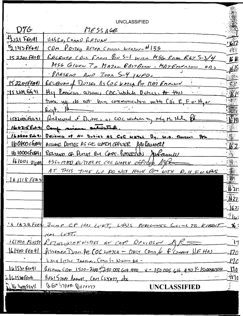 Document 67 f:/Week-35/BX600013/COMMAND CHRONOLOGY 2ND BATTALION 24TH MARINES JAN - MAR 1991 2 OF 2/statement reference s 3 logs 9 jan 1991:0913961614048