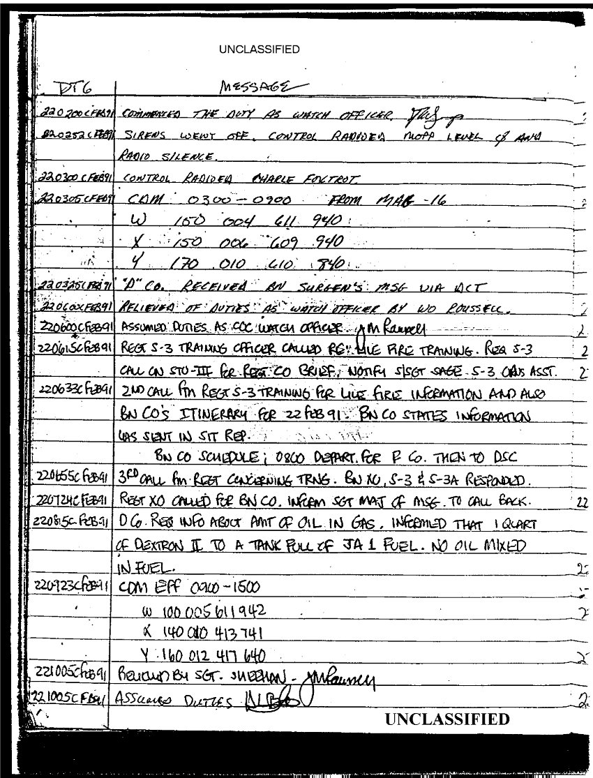 Document 67 f:/Week-35/BX600013/COMMAND CHRONOLOGY 2ND BATTALION 24TH MARINES JAN - MAR 1991 2 OF 2/statement reference s 3 logs 9 jan 1991:0913961614048