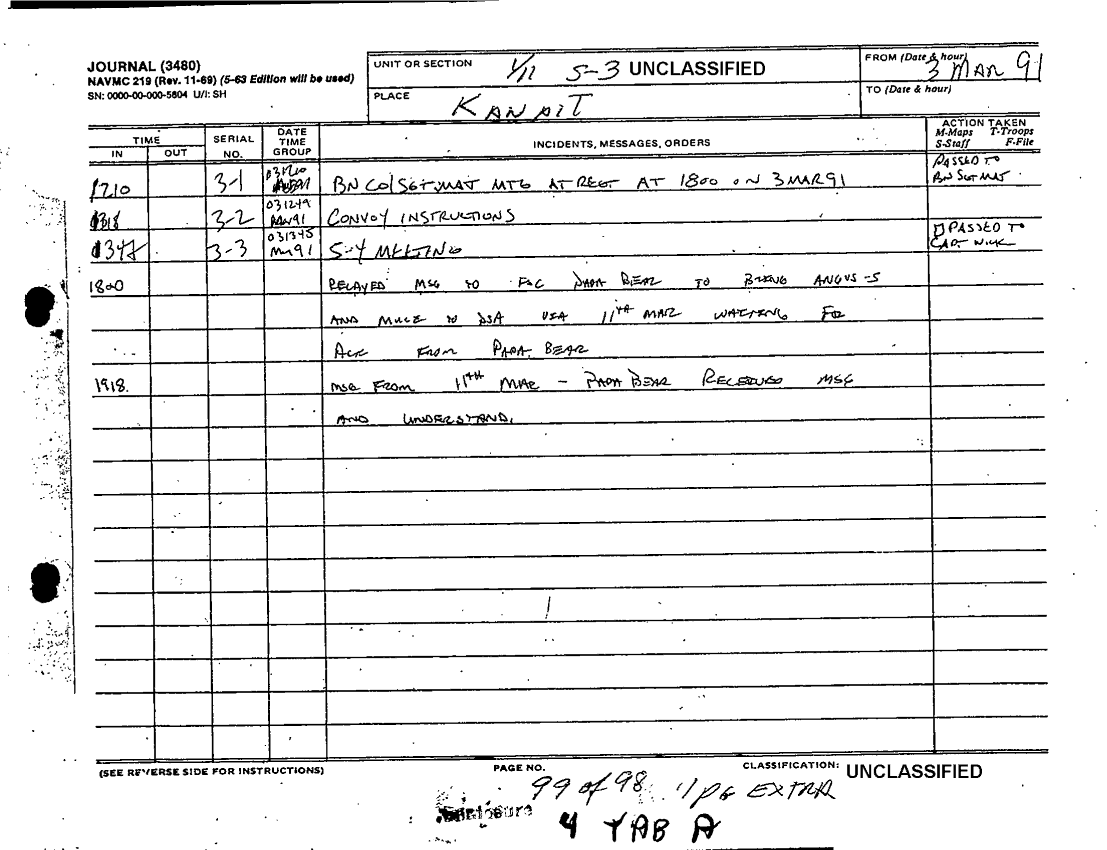 Document 98 f:/Week-36/BX600015/COMMAND CHRONOLOGY 1ST BATTALION 11TH MARINES JAN - FEB 1991/command chronology for period 1 jan to 28 feb 91:1025961320039