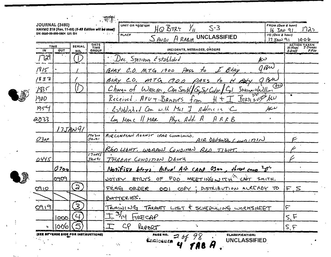Subject = COMMAND CHRONOLOGY FOR PERIOD 1 JAN TO 28 FEB 91