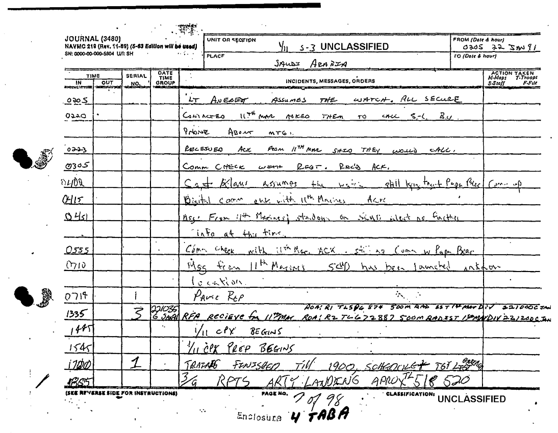 Document 98 f:/Week-36/BX600015/COMMAND CHRONOLOGY 1ST BATTALION 11TH MARINES JAN - FEB 1991/command chronology for period 1 jan to 28 feb 91:1025961320039